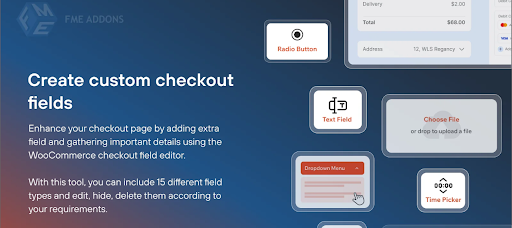 The Checkout Field Editor and Manager for WooCommerce by FmeAddons lets you add, edit, and control checkout fields with conditional logic. It provides you with various field types, custom sections, and dynamic field-based pricing.