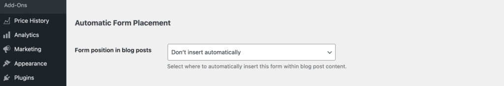 This option controls whether and where a subscription form will be automatically inserted into your blog post content — without the need to manually add a shortcode.