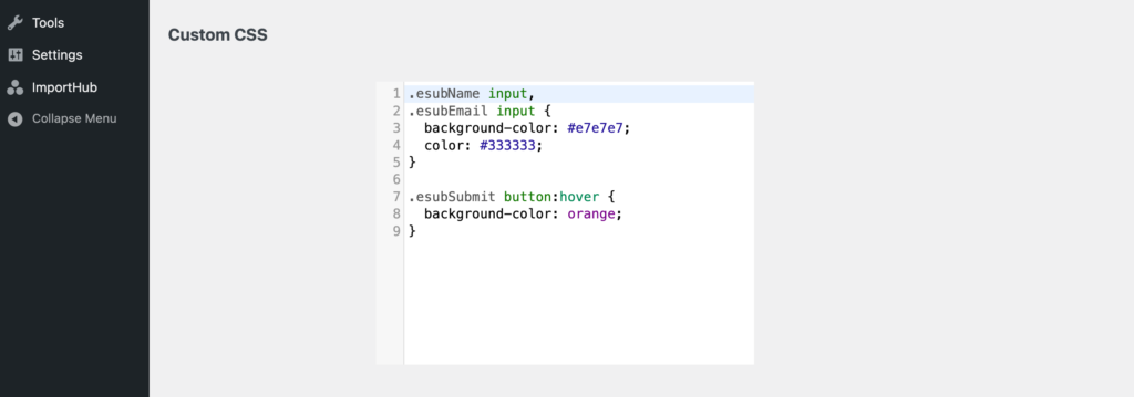 If you need to fine-tune the appearance of the form beyond the built-in design options, you can add your Custom CSS here.
