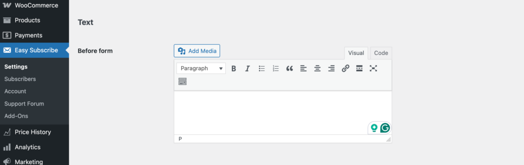 Use it to include a heading, short description, promotional message, or any other text or HTML you’d like to display above the subscription form.