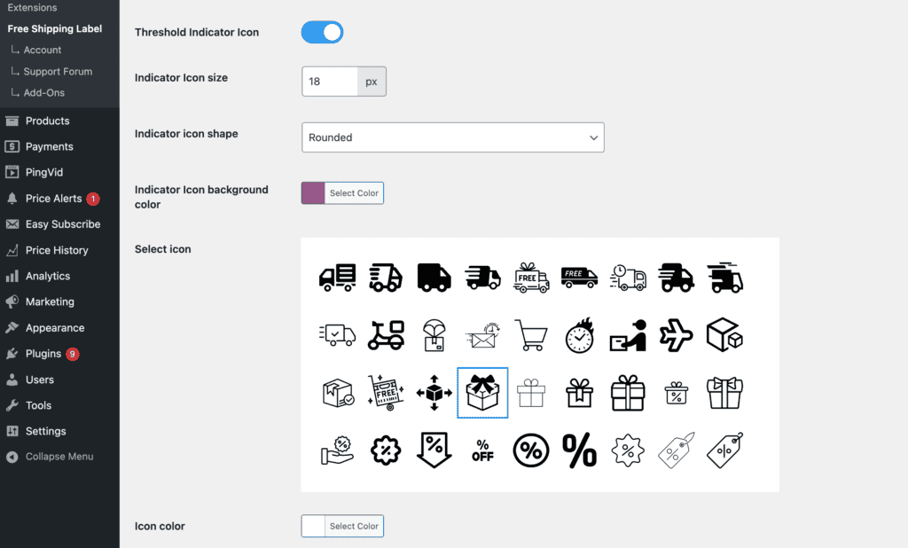 If enabled, you can set and customize an icon to mark the free gift threshold. It will appear at the threshold position on the progress bar.