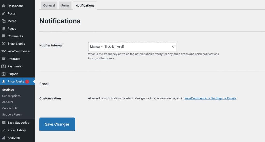 Whenever a product’s price changes, the plugin automatically checks all subscribers for that product.