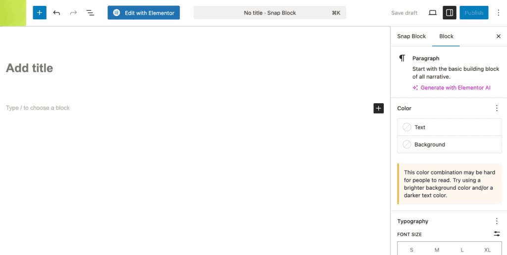At this point, you’re creating a Snap Block just like a regular page or post — the only difference is that this content is meant to be reused, not displayed on its own.
