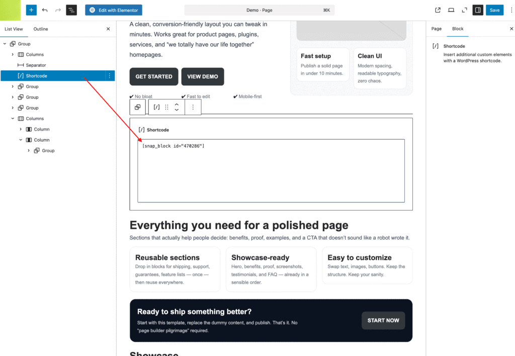 Insert a Snap Block Using a Shortcode